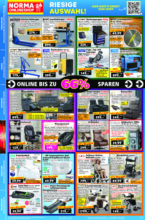 Bitte beachten Sie, dass dieser Text automatisch generiert wird und möglicherweise Fehler enthältfd NORMA Te Zi ONLINESHOP & mf: IKKBAEL Hochhubwagen 1.000 k ELEN Paletten-Hubwagen Tecenart * Werkzeugwagen 263tlg. FIRKRAFT, Kreissägeblatt ECIALIOULS | 2,5 BestNr: 1210232 Best.Nr: 1192765 Nominale Tragfähigkeit:1.000kg Best.-Nr.: 1204434 « 7 groBe und leicht bewegliche 9 ca. 70 Cm für Holz 60 Zähı « Aus hochwertigem Stahl gefertigt « Maximale Hubhöhe: Werkzeugschubladen Griff mit Softgrip für komfor- Best.-Ni 1202216 « Langlebig, zuverlässig und einfach 1.600 mm tablen Transport 2 von 4 leichtgängigen Rollen mit us hochwerigen Manganstal zu bedienen « Gesamtbreite der Bremse mn Mit Hochtemperatur gelöteten Hartmeta] ihnen, Gabelzinken « — Es 550mm Inkl. 263 hochwer- U u ® Max. 2.1001min‘V80,ms = TIERNAHRUNG TOP ANGEBOT tigen Werkzeugen Ke + Gabellänge: 1.1 50m TOP ANGEBO + Mit weiBen Nylonräde Auch erhältlich, 6 LA 9,99 Auch erhältlich: | D EE Auch u. a. erhältlich: a 319,-' > > = | 80 Zähne 74,99* Best.-Nr: 1210225 Ba od 1192766 Best.-Nr.: 1202222 www.norma24.de/tierwelt/tier TOP ANGEBOT TOP ANGEBOT 100 Zähne 79,99* — Best.-Nr.: 1202225 899 120 Zähne 84,99* ee Best.-Nr.: 1202226 recesarr * Werkstattkran 2 Tonnen Bautrockner car 50.1 Kapp-, Zug- und omerzeugel Best.-Nr.: 1213170 Auch erhältlich. für Raumgrößen von 50-120m? Gehrungs- GSE 5501 DSG Best. 11210108 « Traglast: bis zu 2Tonnen Best.-Nr. 1137151 ® Ausgangsspannun 1x.12V/2x 230V/1x,400 VI ca. 160x95x 148cm Balancierer für Werk- © Entfeuchtet bis zu 50 Liter Je HM2545PX mit Le 4 « Netzspannun + Max. Hubhöhe: + stattkran 27,99* pro Tag « Inkl. 71 Wassertank Best.-Nr.: 1128915 230V/400V 236cm Best.-Nr: 1209771 900 Watt Motor 200 Watt \ Material: e Dauerent- « GroBe Schnitt- « Motorleistung: is breite bis 6,5kW/ pulverbe- feuchtung 340 mm 8,8PS Cr FA schichteter durch d « Schnitttiefe ® Kraftstoff- Stahl Abfluss- verbrauch: 90 mm nur ca. 1,5 Ih 4 scha à ss a REISEN | 57% BILLIGER En 0% 5 ToP 34 Inkl. v Spänefangsack 46% BILLIGER ee) v 2 Sägeblätter mit BILLIGER Al NGEBOT UVP: 74 LE jeweils 48 oder 60 UT Helmwerker ‚Zähnen v Alu- KL 399 Tischverbeiterung 899 2: Ausgabe www.norma-reisen.de SPAREN © 9 UOTE OS © _ elaxsöfa®S, Ig. mit 5 Rel nk tio Home- ema 2- elaxsessel ui rd Hachwertiger und pflegel Stoffbezug Best.-Nr. 1109048 © Stabile Konstruk- cà. 91x94x 100 cm Extra dicke u Super bequem und tion und pflegeleicht » Mit Getränke- Best.-Ni 1170306 Stabile Konstruktion Polsterung für En anschmiegsam ul ‚Ablagefach « Verstellbare Relax- und + Mit verstellbarer Rückenlehne « Edler und al höchsten Liegefunktion « Hochwertiger Lederlook-Bezug, schmiegsamer Stoffbezug » Extra dicke Polsterung Sitzkomfort | ‚Grau « Bequeme Doppel: für höchsten Sitzkomfort Mehrfach verstellbar Schwarz Relax- und « Stabile Kon- Bied Sd DB Polsterung mit Dick struktion gn Schaumstoff K Liegefunktion Super ® Hochwertige gepolstert bequem Verarbeitung Wie im Kino | « Einstellbare. er Relax-Liege- Inkl. Stauraum und zusätz- funktion lichem Getränkehalter 5 = ==> ‚Auch erhältlich. = 55% u 3tlg-Set Auch u. a. rhältlich: 3-Sitzer Schwarz 6% BILLIGER 50% BILLIGER v1-Sitzer, ca. 75x95x100cm Rel: rnitur 3tlg. Grau 399,-* [177 v2-Sitzer, ca. 159x95x 100cm Dunkel en 899,-* Best-Nr: 1113999 899 v 3-Sitzer, ca. 182x95x 100cm Best Nr 1093122/1093123 1095489 399 249 En ELC ++ SALEI +++ SALEI +++ SALEI +++ SALE! +++ SALEI +++ Chefsessel Drehsessel Wildkamera 1080 p ca. 66x72x119 om ko ca. 78,5x84,5x 118,5 om XX TX-256 Best.-Nr: 119905: est.-Nr. 11 MM ca. 140x74x 101 cm Massagesessel InBest=Nr.:1212817, Stabiles Metallgestell-lang- Full HD Videoauflösung 20 MP Fotoauflösung Dunkel. ‚Weiche, hoc tige Best-Nr: 1107002 © Integrierte Heizfunktion » Mit gplebig & sicher + Weiche Komfort-Schaumstoff (5,08cm) IPS-Farbdisplay « IR LEDs für bis 5m Nac olsterun braun, ‚itbag Massage für Arme, Beine und Schulte » Ent- ©) Polsterung « Praktische Drehfunktion + Bewegungserkennung bis zu 8m * Schnelle Aus Stabile Konstrüktion— spannende Massagetechniken und vielfältige Relax V2 Elegantes Design mi zeit-nur ca.0,35 « Micro SD Steckplatz bis 32G Rabatt ing & Sicher programme Vormontiert hem Sitzh « Inkl. Befestigungsgurt und 7 « Mit Touch-Screen #/ Batterien + Wasser- und 3 N Neu staubdicht IP66 Auch u. a. erhältlich, « Kamera-Sichtwinkel 96° "7 724 best le LD SchwarzWeiB 799, Best.-Nr: 1156472 | ET Off-White 799 Best-Ni 42% BILLIGER Best.-Nr. 107004 4 hi. UVP: 69,99 eh | 6% BILLIGER 36 0, * 60% BILLIGE! Ra 0% BILLIGER 39,99 ) N | UVP: 299, CAT chwarz UVP: 599, Artikelm Braun ‚Auch u. a. erhältlich Li 129 799 Inkl. v 180° Flachliegen 299 Solar-Wifi-Wildcam vi à Es ZI ERES TIERES TIERES ESSEN Bluetooth°-Anbindung EUR EU RE San KEREL Best 211751 59,99 * A 4 EEN RETIRE PRET TT PRET EEE Kassettenbett (ohne Kissen) Faltbarer Elektro- Alu-Rollator razo22u MIE Ergonomisches Anti- ca. 135x200 cm Best.-Nr.: 1046784 Schnarch-Kopfkissen RELAX = Rollstuhl 4152304 me + Bezug: 100% Baumwolle « Füllung: 1.6009 faltbar, ca. 67x96x100 an! NET Best.-Nr. 1212835 weiße, neue Fedem und SLEEP ca. 50x70cm Best.-Nr. 1213738 _ A Best.-Nr.: 1198308 4 Material: Aluminium: Daunen (90% Federn, ® Füllung: Slegierung, PP, PVC 1 10% Daunen, Klasse 1 lu Garnany Hochwertige Geschwindigkeit bis km/h und Oxford-Gewebe nach DIN EN 12934) Fasermischung | + Reichweite bis zu 20 km ‘Ausgabe 072024 ® Raddurchmesser « Sicherheitsgurt mit prak ca. 20cm } } a { nn tischem Klick-Verschluss + Max. Benutzergewicht À ® Verstelbare hij 2? 120kg — à" 2 Griffhôhe =. « 250 Watt Lithium- * Empfohlene el | lonen-Akku Körpergröße: N f en, a in u À ue — 9 ca. 150-197 cm. (A) 5 ST 1 TOP ANGEBOT 66% BILLIGER 36% BILLIGE! 6 47% BILLIGER, ‚Auch erhältlich: Auch u. a. erl itlich: UVP: 8,60 A Auch erhältlich: mit Zirbenholzs} 49,99 Nackenstützkissen 799 5 FA3023U Best-Nr: 11156: 3 Best.-Nr: 1213740 69,99* 89,99 4 B