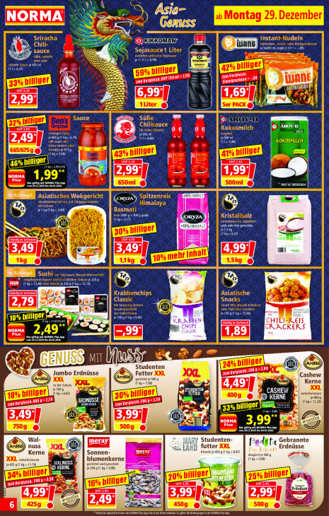Bitte beachten Sie, dass dieser Text automatisch generiert wird und möglicherweise Fehler enthälthd We Mi Cds N dé Asian N eo) EELT Le ré A ; À Bi Di EG @ KIKONEN ANG : L ae . N NEIN Ir: ml N BT | LES ke u in = wr, NODDLE ASSIONN se > u 2,59 zum Vergleich > ze er zum vergl ich: UVP 15) = MALE LUE 59 | Ei R , , Y Ye Mm UVP 4,49 en fin EE ES ro 6,991 IRCE ar: 2,99 res ish day 4 1 = EK 1 — TE = ar STE FA a EN 23 u ne ed f Ben's | 2 AROYED) na! À NA 4 FA UVP 3,69 5. ur 8 oe |. id ne) LE EL de pand re 2,491 je kg 74), | L X u de. Us ik mas oder + | a ES Ts A + Pr. Pa 12 AN 0 Be at Jens Ir sl ol UvP 5,29 Ee Ee UVP 3,39 (1 kg =299/2,95) LS | 4% Pin, KE Ee Er 1,99 Nirint NORMA LLC 1 nd DA LUE | AET CONTENTS Sl nl von 29.12.2025 bis 04.01.2026 — BL NF — RTE ANZ +. Nn TER TE Im CL RE 5 richt- „10% ALT RALAN AN ss Di DH nl n 5 LE 7 RE F AE 8 $ Y Ì l FE PAR % Y 8 e AT hi => > | Kr I DN Bn P, e= > Il BR +10% INHALT PERVERS EESTE PAN PAT RATED Ss Ir js X D > es, eo 3 # PR Ständig im Sortiment LEZ. UVP 4,99 ne es INN { RK N 7 IM anna Ì 4 3,49 en 113,49" 4,99" | À Luo e LE & ps =. m VA ET me Im Kühlreg, vr Fur Ten ad — >] FA Pen LE 259 LT, (+ 7 y MERE ; Ten 5) L | [Ständig im Sortiment B < J Ke 77 5 8 Ö oi 7 li: | DIE $ Bi 22 Re I Me x Le | BEIN st 2 TAN Je x GLEN kg So 2 À Ständig im Sortiment CH EIS En Ê KERS NORMA Plus Nur gültig mit NORMA Plus App ex] À > ; von 29.12.2025 bis 04.012026 183) | los & a GENUS ': // ë Ë Studenten Jumbo Erdnüsse Futter XXL zum Verglei ich: 200 9 Cashew geröstet je 500 g in der Schale 1 kg = 7,98) Ÿ Kerne je 750 g (kg =4,65) GAP RN 31 naturbelassen er 209g & 400: er LRU EL JE RONUSSE zum MTL UE D re Hi tee (1 kg= 11,23) ROSE || I er E or RE >. 3,49 (U dj 3,99 :® 5 Lao ® | | NORMA Der) eat | Plus DATE 0 D ef > si ‘von 2912-2025 bis 04.01.2026 Wal- am = / Studenten- Gebrannte nuss ‘® B ES Ka == Alta Erdnüsse 4 D futter XXL Klassik je 450 g (1 kg = 8,87) D. leck Kerne Sonnen- dragiert je 500 g EI XXL naturbelassen blumenkerne (kg = 598) je 425 g (1 kg = 11,74) WALNUSS geröstet und gesalzen kod KERNE je 250 g (1 kg = 9,96) ne 1 EL TENEU, PNC TT UVP 4,99 UVP 3,99 + U DEEE 5 A Ei A 4,99 eur 05, 3,99’ \ kid 2,99° u >. en RENEE EEE