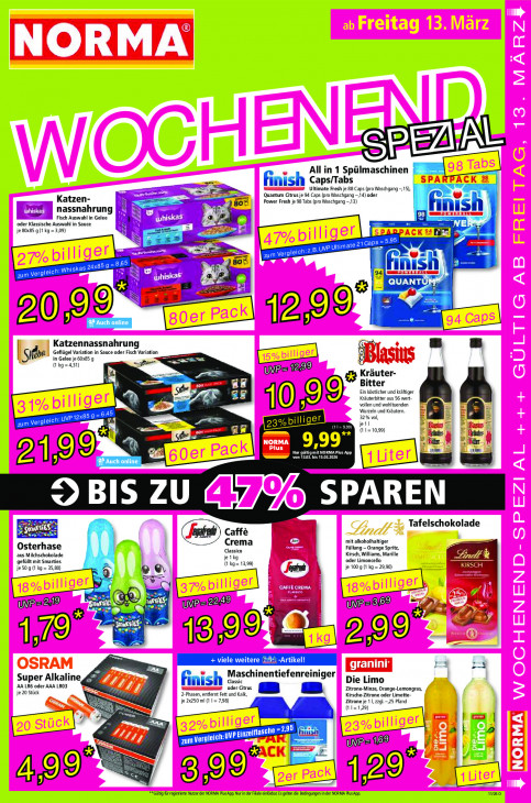 Bitte beachten Sie, dass dieser Text automatisch generiert wird und möglicherweise Fehler enthältAll in 1 Spülmaschinen gm zn finish Caps/Tabs Fe 7 Ultimate Fresh je 88 Caps (pro Waschgang - 15). Katzen- Power Fresh je 98 Tabs (pro Waschgang -,13) Quantum Citrus je 94 Caps (pro Waschgang -,14) oder nassnahrung Fisch Auswahl in Gelee N oder Klassische Auswahl in Sauce à =, |) je 80x85 g (1 kg = 3,09) À 95 cn Cap; er se nn. AT os B.UVP Utimate21 ze 8,65 1 80° ede niskas 24x85 95 el = LE ie ja” GUANTU mr 53 a = Es sl I 5 20 12/99 < Auch o Beer Katzennassnahrung Geflügel Variation in Sauce oder Fisch Variation Si in Gelee je 60x85 g — SRE B (kg =431) Ue BS Kräuter- bh gs Bitter Ein köstlicher und kräftiger AS Kräuterbitter aus 56 wert: 1093 Wurzeln und Kräutern. vollen und wohltuenden -645 ng 32% vol A zum Vergieich: UV p12x859 = Dn en 23% bill CE) je1l (1 1=10,99) fs Ei gi 9,99” EEE DAT IMA Plus App DO KE SE == SPAREN OBIS ZU 47% Sa Tafelschokolade Caffè Crema mit alkoholhaltiger Osterhase Classico Füllung - Orange Spritz, aus Milchschokolade [1] je 1kg Kirsch, Williams, Marille gefüllt mit Smarties (1 kg= 13,99) oder Limoncello je 50 g (1 kg = 35,80) je 100 g (1 kg = 29,90) mn sab FC ess 6) passé + 69 WP 2 DRS mees e WW. 2 5 Le ve 5 > 1399 299 =. + viele weitere LN jraninr Z 1 + Maschinentiefenreiniger AA LR6 oder AAA LRO3 Super Alkaline, finish Classic Die Limo je 20 Stück oder Citrus a a Zitrone-Minze, Orange-Lemongras, 2-Phasen, entfernt Fett und Kalk, Kirsche-Zitrone oder Limette je 2x250 mi (1 1= 7,98) Zitrone je 1 |, zzgl.-,25 Pfand (11=129) bed À Go sion” giflasche =295 ps La zu m Vergieich: A LEL uP= 4% AO) EN 2199 129° **Gülig ürregstrerte Nutzer der NORMA Plus App. Nur inder File einlhar Es gelten die Bedingungen in der NORMA Plus App. 11260