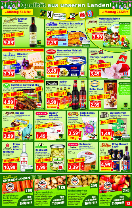 Bitte beachten Sie, dass dieser Text automatisch generiert wird und möglicherweise Fehler enthältun] I it ausäunseren Landen! 6e Qual ‘ii te Es = Mecklenburg rpommern Kräuter- Ee 5 se) Osterspezialitäten likör f , Wesen villa gefült mit Figuren aus Edelvollmilchschokolade sj SE: Traditionsreicher _ Algenta' WEITERE ARTIKEL Kräuterlikör mit angenehm würzigem, bittersüßem Filetierte Bratheringe je 100 g (1 kg= 39,90) Oster Olli Geschmack der nach unverändertem Rezept seit in würziger Marinade handverlesen und Agent je 125 g:3,99 1877 aus Kräutern, Wurzeln und Gewürzen her. frei von Geschmacksverstärkern je 325 g, Abtr-Gew. 200 g (1 kg= 31,92) oder gestellt wird. 35% vol, je 0,7 | (1 kg= 11,45) Osterfondant (1= 14,13) je 175 g:3,99 Ere (kg =2280) AQ ra er 8 Filetierte Brat iz wo 5 ie denburg. a BER Vorpommern A 210,77 [2 à chsen-Anhalt Hausmacher Mahlzeit 5 Frikadellen oder 16 Königsberger Klopse ZITZMANN EE Elbländer je 1,4 kg (1 kg = 6,06) PT EN Heinrichsthaler am Stück, nussig je 250 g (1 11,16) Zr Thüringer Jagdwurst 6K: igsberger je 500 g (1 kg=6,8) 4 Fi, er ELBLANDER A & KL] LE Os ‘ Di = { lu fr EN EET Thüringen Radler a nn k WEITERE ARTIKEL Limette oder 2 A) Holzfäller Bratwurst-Mix Schwarzbier-Kirsche KAEER Kalter Hund im 2x Bärlauch, 2x Dijon-Senf, 2x Chili je 6x0,5 1,z2gl.6x Blister je 1759 und 2x Steal feffer —08 Pfand nz Kar Hund KoND REEN je 720 g (1 kg = 6,93) A 113) (1 1=1,66) Mini je 250 g oder Kalter Hund à! (1 kg= 11,96) Mini je 200 g 3,29 (1 kg =16,45) au u 4 114 > i TN GE EE ' had S$ A sen “ga: m Kurz Wander- et Rocks Lollies/ Bratkartoffeln _Algenta Dip Eier 4 gefüllte Schokoeier mit schmalz Bonbons mit Zwiebeln oder mit Katenspeck Eierlikörzubereitung, zum Löffeln Enagebuge Klas pfel-Zwiebel, Hartkaramelle mit Ei je400 g(1kg=3,73) je1ä4g dumme Tomate-Basilikum oder Zucchi Bärlauch Fruchtgeschmack (kg = 27,71) je 1259 einzeln verpackt, » je 240 gt kg=1079) Ates ee, = ANDERSCHMALZ mit Zwiebeln ï FBGHbons ü ne x Vórper val RAA 25 sachsen-Anhalt Sachsen-Anhalt ecklenburg. (orpommern Prima Oederaner nach Hausmacher Art — Urtyp Dunkel Sprit Lager Von Ansatz- dn | oder Frühstücksfleisch Blutwurst, Landleberwurst je 60,51 Knoblauch zag). 6x spirituose süß sauer mariniert, je 180g En —08 Pfand 69,5% vol, je 0,7 | Aa Kräuter oder mit u ( kg = 13,28) a (11=1,66) (11=15,70) je 185 g Abtr-Gew. 120 g AS] a, (1 kg= 16,58) ne |. sen =d Zr ge NOBLAUCH Ketuel Vorpommern AU bul pnt orpommern EET Sachsen Thüringen CS und UND F! gi we, RISCHE AUS ESL, = Bk UN avs Dey, ws un ld us” A anw herkuntt deutsch = 5 ra © run rn) us de Lt sn KT tschland de); Fust Rand de} ze scan de} Lt ekartoffeln Lt Per aus unseren Landen Mecklenburg- Mecklenburg-Vorpommern Betrieb Ma ie LL) zum um BEE mo U Börde Karotten En el votna, Sachsen. regionalen lagerhaus ee chel- regionalen Borthener Obst e.G. A Li jonalen ‚Arensdorf, Bördegarten Thürir ‚heim, Betrieb Karland Ije2kg EL na Tiefprei S je4kg 11010 Sorten, TIGE