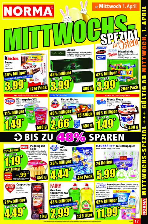 Bitte beachten Sie, dass dieser Text automatisch generiert wird und möglicherweise Fehler enthält| NORMA ‚1. APRIL Classic (SNIERERS] gan Minziger Geschmack vereint mit dunkler u 17 Mixed Minis . | BN serokeiace - einfach zum AnbelGen und Snidcers, Tux, Bounty, Mars und GenieBen. je 400 g (1 kg = 938) 20 Stick, je 40 g (1 kg = 9,98) Milky Way Kinder. sf SPARPRCK ER pr Bueno 12 Riegel, 258 (kg= 154 bueno N was LE: esene Lu QI TXL LU = 329 | IL zum verglel jch:UVP LES CE DURS 7 Ue al Pr 00 20er Pack CRUE NSK RE Götterspeise XXL Fischstäbchen Monte Mega imbeer- oder Waldmeister-Geschmack de 15Sucjeaspgttig=sen Milchareme & Schoko-Nuss oder White == (ig an É >) Mint je400 g (ige, & peurs Say 40% billiger BE TE u 15 Stick =: Lis Speise) 1 MG, 5009 Aaf Sen va} 4009 BIS ZU SPAREN Pudding mit WC- DAUNASOFT' Toilettenpapier “Soße RE Steine Motiv „Frösche 3-gi, je 246150 Blatt î je 9 billiger Schoko Pudding mit Schokosoße, Schako Pudding mit Soße Vanille Lemon & Frische Brise, Ed geschmack oder Grieß Pudding mit Kirschsoße Blau Ozeanfrische oder Blau Chlor & Ozeanfrische 1e 4509 (1 kg = 2,64) PA50g (1 kg=2220) ZT] Pr NT. Bi TEILEN au NASOEI = ET A u UL ergleich:UVP Le AIT re Fr “fs f1 ER 90 Plus DEEE = rer 4509 ger Pack mit feiner Cappuccino u A Aromatherapie Caps coloroder Universal je 30 Caps für 8D Waschladungen (pro Waschgang -,15) Kakaonote HE FAIRY Pulver universal je 45 kg fr 90 Wachadangen ® fr 80 Tassen, RTkg (I kg= 449) Geschirr- (Pro Waschgang 13) A GER spülmittel XXL GRT far 100 Waschadungen Gel universal je 451 90 wischen ee Original oder Zitrone Pro Waschgang 12) 2 FELL | LU ri 42% billiger Hd FAIRY m Vergleich: UVP pulver17 wL= EU = pi 4 NORMA MITTWOCHS-SPEZIAL +++ GULTIG AB LL Lr 2199) a Gif mg ee ere ORMA Ps A une Fc sn ci edge de NORA A pp wo 17