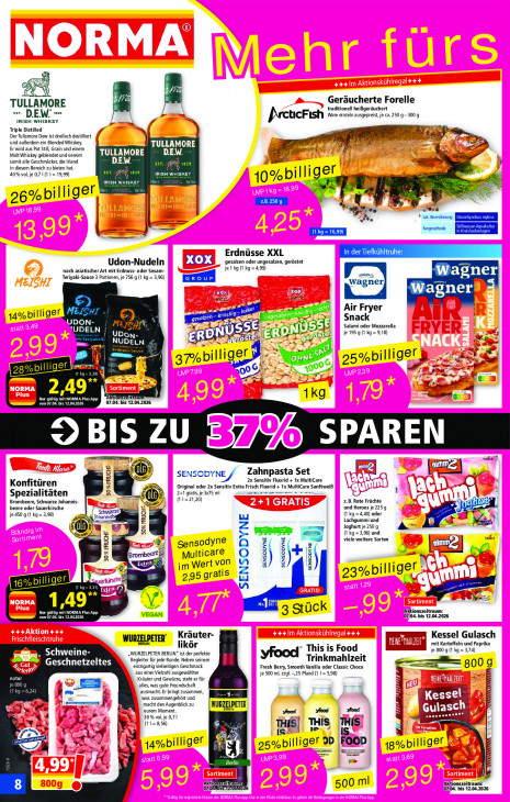 Bitte beachten Sie, dass dieser Text automatisch generiert wird und möglicherweise Fehler enthältGeräucherte Forelle TULLAMORE traditionell heißgeräuchert er DEW > IRISH WHISKEY Peeucr ish Ware einzeln ausgepreist, je ca. 250 g-- 300 g Triple Distilled Der Tullamore Dew ist dreifach destilliert Pr. und außerdem ein Blended Whiskey. LLAMORE Er wird aus Pot Still, Grain und einem ULLAMORE 8 Malt Whiskey geblendet und vereint somit alle Geschmäcker, die Irland in diesem Bereich zu bieten hat. D 40% vol je 0,7 | (1 1= 19,99) EST, F1 er IRIS HISKEY DENT 10%b! Hi 26%billiger N as Er 4 Lat. Bezeichnung, on I Fangmethode rm in anlagen Erdnüsse XXL XOX gesalzen oder ungesalzen, geröstet Udon-Nudeln nach asiatischer Art mit Erdnuss- oder Sesam: many Teriyaki-Sauce 3 Portionen, je 756 g (1 kg = 3,96) | je 1 kg (1 kg = 4,99) Wagner Wagner) Wagner Air Fryer 14% billiger DON- Snack a “N Salami oder Mozzarella UDELN UDon- D NU je 195 g (1 kg = 9,18) NUDELN A Geren GEN D 37%billiger At 25%billige Lg 28%billi 20 > Fe en er Ta > 2,4 9 Te von 07.04. is 12.04.2024 Nur gültig mit NORMA Plus App 07.04. ‚04.2026 1kg SR DBIS ZU 37% SPAREN — ré Zahnpasta Set Fa Ha Konfitüren SENSODYNE / 2x Sensitiv Fluorid + 1x MultiCare A Original oder 2x Sensitiv Extra Fr jorid + 1x MultiCa anftweiB Spezialitäten A 2+1 gratis, je 3x75 ml = — Brombeere, Schwarze Johannis- (11=21,20) 2.8. Rote Früchte beere oder Sauerkirsche N > und Heroes je 225 g je 450 g (1 kg= 3,98) Schwarze (1 kg =4,40) oder N Johannisbi Lachgummi und Min Eu Joghurt je 2509 a Nage ‘ {1 kg = 3,96) und sofa a viele weitere Sorten Sensodyne EA ‚Brombeert# Multicare + ES a = I Wert von SENSODYNE SENSODYNE SENSODYNE Nm %bi 2,95 gratis zasabilliger SENSODYNE 1 . ‚Ag k Aktionszeitraum: Nur gült von 07.04. bis 12.042026 NORMA PlusApp VEGAN 3 Stüc (07/04. bis 12.04.2026 Kräuter- Kessel Gulasch WURZELPETER mit Kartoffeln und Paprika likör » This is Food je 800 g (1 kg = 3,74) Schweine- ‚„WURZELPETER BERLIN” ist der perfekte Scrs Geschnetzeltes Begleiter für jede Runde. Neben seinem Trinkmahlzeit einzigartig vielseitigen Geschmack Fresh Berry, Smooth Vanilla oder Classic Choco 800 9 natur aus einer Vielzahl ausgewählter je 500 ml, 2gl. 25 Pland (1 1= 5,98) = if Kräuter und Gewürze, steht er für z [AK alles, was gute Freundschaft ausmacht. Er bringt zusammen, 3 = + = nen was zusammengehört und El À à essel Pen macht den Augenblick zu ai ‚eurem Moment. NURZELPETER food food ood' las a +, | eN 30% vol je 0,71 pi . 4 = (11=8,56) THIS] WF GA | Pre X > I THIS mE A sr sis u ww 14%billiger = LA 25%billiger DD FOOD 18%billige Ft ve lin 50 oml Aktionszeitra: Gi (07/04. bis 12.04.2026