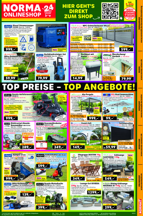Bitte beachten Sie, dass dieser Text automatisch generiert wird und möglicherweise Fehler enthältZUM 47 IN FOLGE! HIER GEHT'S M. DIREKT ZUM SHOP |, [eli 3 E Diesel Stromerzeuger Phare WPC-Sichtschutzzaun VALLA he SG5200D Best.-Nr: 1100555 Best.-Nr: 1206313 + Nenn-/ Max.-Leistung: 4.200/5.000 Watt bei 400V. + Schnelle und unkomplizierte Montage eo TIERNAHRUNG a. 16Liter Tank für einen stundenlangen Einsatz ec + 1. Generation WPC (naturfaser- 5 gs « Fahvorichtung mit vier Räder und Handgriff verstärkter Holz-Kunststoff- re |] « Motorleistung: max. 7,7 PS. | Verbundwerkstoff) Te « Stabiles und robustes. Überlastungs Sprtsparend + Witterungsbeständig Gehäuse kl =. Sichtschutz = | Windschutz Klarna. Raten- ” En hd Starterbatterie Sonnenschutz zg zahlung möglich Überlastungsschutz AB Ölschutzschalter Auch erhältlich: www.norma24.de/tierwelt/tiernahrung Spannungsmesser Kraft Elektro Start mit Design, 1x Element + 2x Pfosten Best Nr. 206314 199, ohne Design, 5x Element + 6x Pfosten Best Nr. 206311 499, ohne Design, 1x Element + 2x Pfosten Best Nr. 206312 119, Ratenzahlung Aluminium-Design, 1 x Element + 2x Pfosten Best Nr 1214003 199, 999, | & © möglich | Aluminium-Design, 5 x Element + 6x Pfosten Best Nr 214002 799, 2.0" — Hochdruckrei er-Set Hochbeet mit rowerrsct Überdachung/ ane imähe: Em HCE1600SE Best. 1098633 une] Vordach lex LM23 Best.-Nr: 1219913, mit max Best.-Nr.: 1200592 Best.-Nr.: 1191046 135 bar Druck « Quick Connect + Schnitthôhe: 30—60 mm (3 Stufen) Zum komfortablen Gartnern in pe ed « Ideal für kleine Gärten bis 50 mi System zum schnellen angenehmer Arbeits « Mulchfunktion — kein Fangkorb nt tauschen der Ki höhe « Gewächshaus- + Robuste « 360 drehbarer Gif Effekt für optimales ‚Aluminium 1 1 ù en ‚Wachstum durch hal ame Halterung transparente Abdeck ze haube « Haube mit 2 Akkus (12V/4,0Ah) el Î S Ladegerät Belüftungsschieber, a it Windsicherungsriegeln # REISEN MES und Eingriffen Auch u. a. erhältlich: ca. 140x90cm, 3mm Dicke 99, 59,99 Lee Best.-Nr: 1191047 www.norma-reisen.de TOP PREISE - TOP ANGEBOTE! ter tr sche! y Benzin-Auf. tzrasenmä er. à even moon Alu-Pergola -Oval-Sonnenschirm MR200-61 Best. r.: 1086051 2Ah Akku Best.-Nr.: 1198503 Stabile Doppelschirm-Konstruktion Best.-Mi 1205463 2,4A Lade- « Lamellen mit Pulver- « Bezug: 100% Polyester « Haubenbelüftung Leichtes Öffnen und Schließen _ + Geeignet für Rasenflächen bis 2.600 m2 gerät beschichtung | mn, Zentrale Schnitthöhenverstellung in 5 Stufen « Besondersj ES per Hand- = von 35-75 mm langlebig Je kurbel Hybrid-Start y Fangen LA widerstan. Seitenauswurf Radantrieb fähig gegen Große 1501 NS Wettereinflüsse Kiarna. Grau Beige Reinigungsfunktion Mähen Fangbox le + Aus Alumini Lid Raten- Best.-Nr ur 108604 WEINSHOP Kla Ratenzahlung — zahlung S möglich Leistungsstarker Auch u. a. erhältlich: möglich Motor 3,5kWi4,8PS_ ca. 300x360x 230cm Best. Anthrazi err: wore 1.:1198504 1099, www.norma24.de/weine 5fache Schnithöhenyerstelling SN ca. 300x390x 230cm Best.-Ni Best. 999, | jen Best-Nr.: 1198516 1199, KEN KN 1086048 108604 Elektrostart-Benzin- j Rasenmähroboter MO rome rome « Living Event-Zelt «Living Seitenmarkise Germany Rasenmäher msı7351E RoboCut L500 Best. 1098537 Best.-Ni 109879; E — Best.-Nr: 1179344 + Wasserdicht und UV-beständig « Einfach Montage ® UV-beständig und leicht, « Robustes, pulverbeschichtetes Stahlblechchassis Best.-Nr.: 1219225 Mit Lüftungsschlitzen gegen Wärmestau abwaschbal « Schnitthöhe 20-60 mm An tion « Strapazierfähiges Polyestergewebe mit stabilem © Leistungsstarker 4-Takt-Motor 3,0kW (4,1 PS)/173 an? « App-Steverung via Bluetooth & WLAN Stahlgestänge « 7-fache zentrale Schnitthöhenverstellung 25-75mm, « Inkl. Begrenzungskabel für definierte Mähfläche, « Schnittbreite: N Bes. 180mm = Cl Zubehör minium el Berne mau ren Yad ea TE ‚vo Höhe ca. 260 cm ‚Auch u. a. erhältli rn (Anthrazit) @.4,5x1,6m Anthrazit F4 gut An 4500, Best-Nr: 1205506 79,99* us ca.6x1,5m {) Tragetasche 99, ca. 51cm LES 312023, | 349,- | Abspannseile Heringe AnthrazitiBeige Best.-Nr. 1098819/1098820 MOBILFUNK are radantrieb Balkenmäher gms196-58 x Sitzgruppe BOSTON Pass Klara. Dumper pp3000 Al EUREN Best.-Nr.: 1183716 Ecklounge www.norma-connect.de Best. 104601300, ° Best.-Nr.: 1199317 * Aus hochwertigem SANTORINI Raten- 4 #9 Leistungsstarker 5,7 PS/4,2KW 4-Takt-Benzin-motor (mama Akazienholz « Platzsparend zusammen- Best.-Nr. 201910 zahlung « 3x Vorwärts-/1 x Rückwärtsgan | mit 196m? « Extra große Schnittbreite von ca. 88cm klappbar « Mit Sonnenschlmhal - . Aluminiumrahmen mit sandkörnigen möglich « Kippbehälter: ca. 912x650x 560mm Schnitthöhenverstellung von 30- 60mm desTischs er ‚Pulverbeschichtungsfinish « Verstellbare « Für Lasten bi m Il IT dn üße für Stabilität auf unebenen Flächeı 3 max. 300kg Ji ll JT à — gt Er EL, ee Es we Klarna. EA fl TU Nn IH ICH — Raten- re er B EA) Es zahlung en [esse möglich = y is ij be + er” D ms" Auch erhältlich von: Auch erhältlich: a Klarna. Raten- Ke Schwarz/Hellgrau zahlung möglich En Best. 1182404 34t En Best. 1213775 Ra | Akku-Kettensä Benz! -Motorhacke Plu Lounge-Set RIVIERA bellavista Dining-Ecklounge “brushless” BC-CS355Duo-X - Set. MTP750 Best. Nr: 1198124 Best.-Nr.: 1201930 MADEIRA I! Best. 1165301 ONLINESHOP Best. : 1194990 + Automatische Kettenschmierung + 24 Messer für beste Ergebnisse eistungsstarker « GesamtmaBe des Sets: ca. 225x225x63cm « ProCut Qualitätsschwert mit 33,5 cm Schnittlänge 4-Takt-Motor mit 5,7 PS/212 cm? « Ergonomische « Platz für bis zu 8 Personen « Pulverbeschichteter Stahlrahmen « Tischplatte aus Komforthandgriffe pflegeleichtem Kunststoff-Material « 2-Sitzer Sofa: www.norma24.de Ber « Stabile Konstruktion aus ca. 124x67 x 73 cmije Sessel: ca 64x 71 x 73 cm. e Klappbares Stahl und wetterfestem Misch 2x 20V 4Ah Akkus fransportrad Kunststoff-Rattan KEE Doppelladegerät Gewicht ca. 32,9kg 90% 1139, - | = 55 