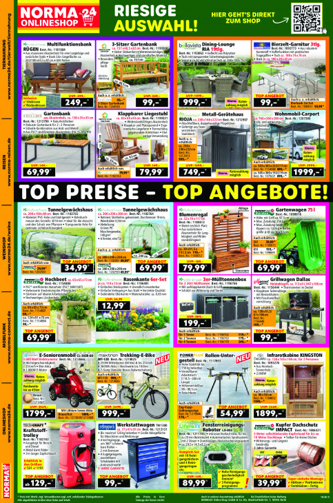 Bitte beachten Sie, dass dieser Text automatisch generiert wird und möglicherweise Fehler enthälte]! [al] RIESIGE HIER GEHT'S DIREKT ZUM SHOP \—7 IE AUSWAHL! Mb Multifunktionsbank eN 3-Sitzer Gartenbank Bierzelt-Garnitur Best. 119930; bellavista Dining-Lounge amen Best-Nr: 1092773 Aus robustem RÜGEN gestn 1181684 a + Aus massivem Akazienholz für eine langlebige und + Hoher Sitzkomfort « Wetterbeständiges Best.-Nr. 1193063 + Geflecht aus Polyrattan Kunststoff « Kofferfunktion mit praktischen natürliche Optik « Bank Sitz-Liegefläche: ca Marienholz ochneriges und standhafes Materia re 5 « Tisch mit transparenterSicherheitsglasplatte Tragegriffen « Tisch 202/180x65,5x87 cm « Mit Rollen Besonders pas, C2. 157 cm | je ca. 62x6 93 ane Tisch ca, 20 100x 75 cij Le Bank pflege- leicht wien. TIERNAHRUNG zeigt (öinliche 4 Abbiklung) Br D ca 999, EENS möglich ‚Auch erhältlich; ca. 503x 305x232/217 cm REISEN Auch erhältlich von: Best-Nr: 1154068 899, 79,99* Ratenzahlung ca. 505x 300x192/219cm Klar möglich Best-Nr: 182352 Best.-Nr. 1079221 899,-* www.norma-reisen.de TOP PREISE - TOP ANGEBOTE! LA He Ablage Tunnelgewächshaus Tunnelgewächshaus power! Gartenwagen Best.-Nr.: 1183765 Best. 183764 Blumenregal Best.-Ni 1098018 + Material: PVC-Folie und Stahlgestell ® Rohrdurch « Rahmen: Stahlrohre, galvanisiert, Durchmesser 19mm, eden « Höhe mit Griff ca. 97,5cm messer des Gestells: @ 16mm « Ideal für die Anzucht Wandstärke 0,50mm a Best.-Nr.: 1180613 Max. Zuladung: 250kg und den Schutz von Pflanzen « Transparente Folie für ‚Abdeckung: FH « Max, Zuladung bei oe optimale Lichtdurchlässigkeit Grünes PE « Bietet reichlich Platz, 4 f Ä Aus natürlichem — Kippen:ca. 120kg e Reifen, I Maschengewebe, Akazienholz für Lang größe je 0 «a. cn 140g/m? A lebigkeit und Wider zl Auch erhältlic « 6 Fenster, eine Tür standsfähigkeit se jm 501 59,99* 1; Auch erhältlich: Best-Nr:118615 | [Auch u.a. erhältlich; @.39x91,5x 651 15! si 2 151,5cm 119, Re Best.-Nr: 1098691 Ei Ca. 200 cm 3 Best.-Nr. 1180612 WEINSHOP 1á zer ca. 300x200x200cm LES 1 Ë ‚Auch erhältlich von: Best.Nr: 1182601 69,99 CEE 29,99% c 300x200 x200 cm Best 1202561 as Best. 1202559 69,99* mi EE Éaurum ke www.norma24.de/weine ki ea 5 Hochbeet & ur Rasenkante H> a -Mülltonnenbox Grillwagen Dallas EEND gestenr: 1154000 Best.-Nr: 1196481 Best.-Nr.: 1196766 gourmet + FSC®-zertifziertes Naturholz (FSC? NOO1 587) , * Einfaches Stecksystem « Unendlich erweiterbar « Mit aufklappbarem Dach & Griff Best.-Ni 1156444 + Thermometer im Deckel = = + Verbesserte Enwärmung des Planzqutes « Einfache Verlegung + Aus Stahl « Verzinkte Qualität Schützt vor Witterung und Tieren 4 « Klappbare Seitenablage Gärtnem auf idealer Arbeitshöhl « Gebördelte Oberkante « Materialstärke: ca. 0,65 mm mit Besteckhaken « Hochwertiges Lärchenhol s « Mit Flaschenôfner ee, vorichtung Pr Auch erhältlich; # pe ca. 90x65x73cm Auch erhältlich: PET Een Best. 1154881 7 ca. 138x61,5/ 8 =‘ 67x106cm ca. 124x91x73cm Best.Nr. Best. 1154884 Ar Bes 1156446 99, id nm? Pl 109, N Auch erhältlich: | für 1 Tonne Best. 1196762 119, 1 für 2 Tonnen Best. 1196763 179, für 4 Tonnen Best. 1196770 249, MOBILFUNK Rollen-Unter- & Infrarotkabine KINGSTON <«ov« E-Seniorenmobil cı-3028°40 maxtron Trekking-E-Bike Dewello Best.-Nr.: 1213666 MT-12X_ Best.-Nr.: 1219825 estell best. 117893 www.norma-connect.de « Höchstgeschwindigkeit « 250W Mittelmot: (60 Nm) & bis 25 km/h ® Hohe Stabilität bis. Best.-Nr: 1093276 25 km/h » Blei-Akku 360Wh Akku - Reichweite bis 100 km « Aus Hemlock: « 1.000W E-Motor a) Rot Gang Shimano Nexus Nabenschaltung e Verstellbarer 150kg belastbar rr Tannenholz ‚Auch erhältlich, T + 2.000W | | Klara. Raten- ‚Arbeitstisch MT-11X 999, (118,5-200cm Klara. Raten- zahlung möglich Best. 1219826 Länge) my: Reichweite « Höhenverstellbar: zahlung möglich = bis zu 45km D 90—98,5 cm T Lu « Rutschfeste Auch erhältlich, [ FE 5 Braun A ca. 90x90cm Best.-Nr: Best 184652 1213667. EE 1599, ‚Auch erhältlich: En Zug-Kapp- Mit Lithium lonen-Akkı Gehrungssäge Braun/Rot 1899, Best 19846 899 TITI MAA 1799, Best.-Nr. |213669/1213668 ze 179, LEK mn \ A ra TECH CRAFT ° ttwagen 1w1300 (LHenext Fensterrei une Powers! Kupfer Dachschutz AT Werksta Best. 1212131 IMPACT Best-Nr.: 1006421 ONLINESHOP Kraftstoff- « Bis maximal 120g belastbar « Große Ablagefläche _. ——— ‚Roboter ıx.055 ©: : trolle: Best Nr.: 1211745 © Inklusive Notlauf-Akku für bis Best.-Nr.: 1182102 für Maschinen und Werkzeuge "Hzu20 n Betriebszeit Automatisches Sprühsystem « Teilbar für kleine Dächer www.norma24.de + 4 leichtgängige, mit 2 Düsen + Zuverlässiges Absturzicherungssystem « Witterungs- und langzeit « Ausgelegt für Benzin um 360° schwenk @.29,5x14,5x8,2cm” 2, ba beständig und Diesel bare Rollen — ER re 0 3 Jahre Garantie Zi + Mobil dank Räder 2 mit Bremsen en MIT OHNE « 3m langer Zapfschlauch + 4 kugelgelagerte, pe +4 pp ausziehbare mit 10 Reini pe Schubladen mit ‘ gungstüchern Ve de ds ‚Antirutschmatte i und 4 Reini- © gungsringen x 531 1191 etc. RFC RUE À Hohe Reinigungs- 3 me > 5 geschwindigkeit Amin/m? 3 Reinigungs- Ablôsen Positionieren RS 89,99 == rs rem programme Festdrücken - Fertig * Preis inkl. MwSt. zzgl. Versandkosten zzgl. evtl. anfallender Stückgutkosten En Preise a ET ‚Auch in anderer Ausstattung erhältlich Bei Druckfehlern keine Haftung REEN ECTS RE EC Solange der Vorrat re ht! NORMA24 Online-Shop GmbH & Co. KG, Manfred-Roth-Str. 7, 90766 Fürth