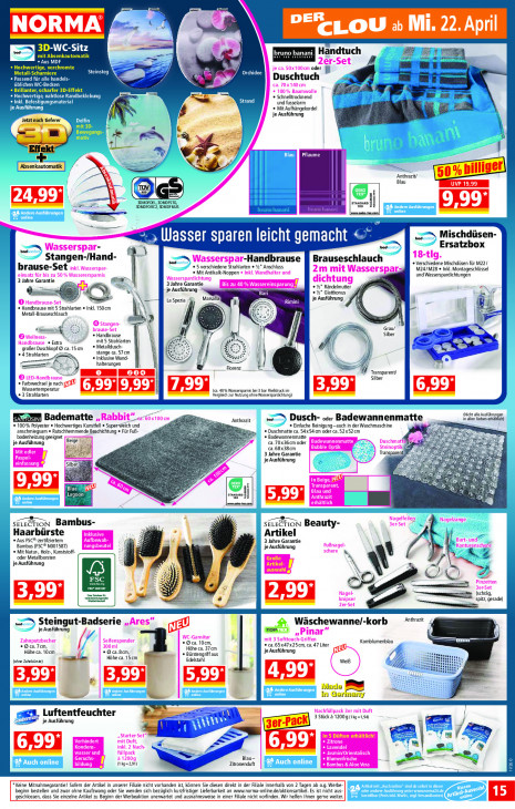 Bitte beachten Sie, dass dieser Text automatisch generiert wird und möglicherweise Fehler enthält= DE NORMA LOU : Mi 22. April EN ne . eh => -WC-Sitz Aus MDF À Handtuch u oder | wm f Steinsteg CET ES Duschtuch + Passend für alle handels- be IR En TEE 5 Car = nd iz + Schnelltrocknend L £ À ER rg F und fusselarm ZN Er + Mit Aufhängekordel je Ausführung ge rer mit 3D- Er Bewegungs- 5 à + FR = [Absenkautomatik | Anthrazit Blau UVP 19,99 —i | E À 3DMDFDEL, 3DMDFSTG, 3DMDFORCZ, 3OMDFMUS | sranoano Ë | | note -ter com a ——— had 4 hee S Mischdüsen- Wasser sparen leicht gemacht €“ Ned ” bad. Ersatzbox NS Stangen-/Hand- bad N Handbrause Brauseschlauch +5 verschiedene Strahlarten + 2" Anschluss Verschiedene Mischdüsen für M22/ brause-Set M24/M28 Inkl. Montageschlüssel + Mit Antikalk-Noppen und Wasserspardichtungen 3 Jahre Garantie ee DA = 3 Jahre Garantie ij © 1” Rändelmutter je Ausführung © 5” Glattkonus NF ds a CI in Ne | La Spezi Marsallal je Ausführung HD + Handbrause mit 5 Strahlarten + Inkl. 150cm Metall-Brauseschlauch Kin ums | D u D È } / Grau/ { Handbrause hi Silber ne «Extra mit 5 Strahlarten Rn 4 Metalldusch- Tr der großer Duschkopf © ca.15 m { d << + 4 Strahlarten = stange ca. 57cm I % © Inklusive Wand- | Î | 2 = nt? = = halterungen | 4 D Florenz Transparent/ « Farbwechsel je nach Wassertemperatur (@.40% Wassersparnis bei 3 bar Fießdruck im «3 Strahlarten WE Vergleich zur Nutzung ohne Wasserspardichtung) (licht alle Ausführur ni Badematte Se Anthrazit bad: N Dusch- ot: Badewannenmatte in allen farben erhält nich + 100% Polyester « Hochwertiges Kunstfell « Superweich und =“ = ve « Einfache Reinigung-auch in der Waschmaschine anschmiegsam « Rutschhemmende Beschichtung » Für FuB- + Duschmatte ca. 54x54 an oder ca. 52x52 cm E > + Badewannenmatte bodenheizung geeignet Bei AE En je ca. 70x36 cm oder = Be = je Ausführung er fe ca.68x38cm ® be zi 3 Jahre Garantie Transparent = je Ausführung Er a 4 5 d je Blu TE ” sranoao À df loten 5,99, pr SELECTION Bambus- stLEËtioN Beauty- 4 Haarbürste N Artikel #1 « Aus FSC®-zertifziertem 2 zi 3 Jahre Garantie Bambus (FSC® N001587) Mit Natur-, Holz-, Kunststoff- je Ausführung oder Metallborsten } € GroBe je Ausführung Artikel- 7 EEP \ NA £ \ 2 27 FSC = à N nt Des on a (schräg, ne pitz, gerade) m ‚Anthrazit ves. * Steingut-Badserie je Ausführung sé | # Waschewanne/-korb Komblumenblau Oca. Jem, «Oca. 10cm, + ca.65x47x25 cm, ca. 47 Liter Höhe ca. 10cm Höhe ca. 37cm je Ausführung pe 7 hi *Oca.8cm, = + Bürstengnffaus (ohne Zahnbürste) Höhe ca. 15cm Edelstahl E Weiß 5 a E EKE EKE EE Made a. je — in Ge: Luftentfeuchter je Ausführung u 3 Stück à 12009 (1kg=1.99 gern | \ Een In 5 Düften erhältlich! af. = pe) Blau- rer} Zitronenduft mn * Keine Mitnahmegarantie! Sofem der Artikel in unserer Filiale nicht vorhanden ist, können Sie diesen direkt in der Filiale innerhalb von 2 Tagen ab Werbe: beginn bestellen und zwar ohne Kaufzwang oder Sie wenden sich bezüglich kurzfristiger Lieferbarkeit an www. n line.de/aktionsartik Es ist nicht aus ‚geschlossen, dass Sie einzelne Artikel zu Beginn der Werbeaktion unerwartet und ausnahmsweise in einer Filiale nicht vorfind ir helfen Ihnen geme weit