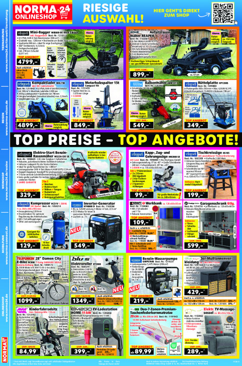 Bitte beachten Sie, dass dieser Text automatisch generiert wird und möglicherweise Fehler enthältlil NORMA ONLINESHOP & ER eg | Edit © Klama. OMI Aufsitzrasen, u Mini-Bagger mi8s00-8E inkl. Baggerdach Best.-Nr. ù Raten- sd imäher REAPE] Raten- + 8,5 PSI6,3kW 4-Takt-Benzinmotor (306 m?) Mn zahlung Best.-Nr.: 1183661 Ge & 2 > zahlung (ea 150 Liter Grabtiefe max. 1200mm » Reichweite am Boden Max, 233 àl möglich Rss pit « Spurbreite 690mm -ideal für enge Durchgänge ER ® 4-Takt Motor 4,8kW16,5PS\LS ‚Zentrale 5-fache Schnitthôl möglich ne mma Fangsack 360° Drehbereich, 9,3 U/min Rd Drehgeschwindigkeit Spur- Fahrge- kai Ada = verstellung ca. 35275mmyR Br à TIERNAHRUNG « Inkl. 290mm Schaufel breite schwind- GEN XXL-Schnittbreite Von ca. 61 cm 690mr keit max. Kleiner Wenderadius® ve I (0,011 m2) 7kmih 2 cm Rasenschnitt TOP ANGEBOT 2’ lsser-Reinigungsfunktion PN) oe Hochwertiges Schneidewerk tet aus geschliffenem Spezialstahl ri breite Schaufel Steigfä- Auch erhältlich, 290mm higkeit max. 15° ohne Dach UVP: 1499,- www.norma24.de/tierwelt/tiert Best.Ni ki I% 1219389 Re LE 61cm 4759, Fe an Kompaktlader mxL730 Meterholzspalter 15t Balkenmä EL GBM 87. Rüttelplatte np1200s inl 01 Ladeschaufel ET Compact 15t Best.-Nr.: 120350: EE Best.-Nr.: 1099880 Best.-Nr. 1211043 e 8,5PS/6,3KW 4-Takt-Benzinmotor Best.-Ni 1151455 + Schnitthühe 302. « Plattengröße 450x 350 mm « Max. 4,8kW/6,5PS mit 306cm? « Maximale Ladehöhe 2.000 mm + Spaltet Holz bis ca. flexibel « Verdichtungsdruck 15.000 N + Hubraum 196 cm° 1.070mm Länge einstellbal « 200 kg Ladekapazität « Spurbreite von 740 mm « 3.500W | « Kraftvollei POWER: FI | 5.200 Vibrations. © Fahrgeschwindigkeit (vorwärtslrücawärts) max. 2,3km/h stößel ® Steigfähigkeit max. 25° Vario 4-Takte Ctrl ei LN B Benzin Spalt für Weiden, Koppeln, 5 motormit 6 System und hohes Gras ec ei 3m { A Klara. À #10 Verdich E “= Er Raten- tungs- Klarna. Raten- fe sf. ee | zahlung zahlung möglich LL möglich i k Ÿ a TOP ANGEBOT TOP ANGEBOT ii UVP: 849,- TOP ANGEBOT REISEN en ge Ratenzahlung © 4899 möglich 49 www.norma-reisen.de TOP PREISE - TOP ANGEBOTE! Kraftvolle wieder- Elektro-Start Benzi aufladbare Li-lon Kapp-, Zug- und chk: säge 45105 | Rasenmäher ms226-53E sE El ETE mit ausziehbarer Tischverbreiterung Best.-Nr.: 1098629 « 65 Liter Fangbox » Selbstfahrer A. Starter-Batterie PRODUKT re, ) Gehrungssäge HM2000 SE Best.-Ni 1063309 + Kraftvolle 2.000 Watt mit Laser Best. 1098489 + Alu-Druckguss-Gestell Inklusive Querschneidlehre + Robustes, pulverbeschichtetes Stahlblech-Gehäuse CES + Gehrungseinstellung 0° bis -45° « Große Schnittbreite Längsanschlag und =# « Inklusive Ladegerät für die Starter-Batterie 340mm e Schwenkbereich -45° bis +45° Schiebestock Sr © Ideal für große Rasenflächen bis 1.800m2 Fe + 2.000W + ca. 735x593x505 mm Leistungsstarker OHV 4-Takt Motor 4,4 kW (6 PS)/224 cm? Inkl. Präzisionslaser « Schnitthöhe bei 90° Doppelt lappbarer Handgrf für platzsparend Lagen din maximal 90mm/ + 7-fache zentrale Schnitthöhenverstellung 25 v 2x 216mm 45° maximal 65mm El « Extra große Laufräder für leichtes F ren, ra | HW-Sägeblatt © ca. 630x675x1100mm unebenen Flächen Ee v 2Alu-Tischver- 7in1 breiterungen Inklusive Hart- 5 JAHRE GARANTIE Mulchen RS AN v 2 Spannvor- + | Ed metall-Sägeblatt ER v Elektro-Start richtungen TOP ANGEBOT Y Mähen / Fangen 1 - J TOP ANGEBOT U a Gn TOP ANGEBOT v Radantrieb v Seitenauswurf am Für große Werkstücke | Reinigungsfunktior 74 Schnittbreit bisca.340x65mm 6 7 u N Kompressor ucs1v 1.500W, Inverter-Generator BEKRAFT, © Werkbank c.. 120x60x85cm Orgues Gara jenschrank 6tlg. 501 Kessel Best.-Nr.: 1054314 HY4000i Best.-Ni 1169266 Best.-Nr.: 1199083 Best.-Nr: 1214710 «je ge erkbank: ca. 120x85x60cm + ca. 364x346x955 mm Takt, 223 cm? Mit 2 Schubladen Robuste Metallkonstruktion mit « ECO-Modus für leisen & © Bis zu 3,8KW Leistung » Motor: und 1 Tür © massiver + Ansaugleistung 220 min B + Druckminderer für optimale sparsamen Betrieb = Robuste Konstruktion Rot | Buche- Regulierung des Arbeitsdruckes © Laufzeit: a. 7h LL TOP ANGEBOT 4 ee Arbeitsplatte « Mit 2 Schnellkupplungen N ie = Inklusive ® «Ölfei und wartungsam à Gn v Türen Ih v Schubla- 7 Auch u. a. erhältlich: den Mm v Lochwand Geeigent für ne 5 Best. 3tl un LKW-Reifen — v Hänge- schrank ‚ca. 240m . befüllen schrank RotjBlau © Werkstatthänge- a Best UVP: 1999, TOP ANGEBOT 10 bar TOP ANGEBOT 99089 59,99* - Arbeits- Mit 1 Schublade und druck 2 Türen Rot/Blau N Best.-Nr: 1199085 109,- Benz ft 3er-Mülltonnenver- TELEFUNKEN 28" Damen City rs -Wasserpumpe > E-Bike rceso 7-Gang SHIMANO NEXUS # GWP57645 Best. 19221 kleidun 2 196X80% 1 16e Nabenschaltung Best.-Nr: 1090173 Elektroroller xr2000 gistungsstarker 5,4PS Motor (208 cm?) Best.-Ni Tab 563» Für Mülltonne 250W Motor mit 36V/13 Ah Li-lon Akku Best.-Nr. 1089241 « Fördermenge Display e Elektromotor 2 KW & tl bis 30.000 Ûh m BO ba 240 Le Fassungs® "® Höchstgeschwindigkeit: 25 km/h bis zu 45 km/h Reich- e Förderhöhe vermögen #0 Max, Reichweite: 100 km/h LED-Be- I weite bis 50km bis 65 m/ . Luftzirkulation. leuch- durch RR (SELLE ROYAL: City-Lenker, I IGOVI2OAN Akku) Ansaughôhe CH Belüftungs attell Buy mit Ergo®= tung e Emissionsfrei & leise bis 7m PATIO schlitze 4 Ta ideal für Stadtverkehr, we « Abschliebar griffen N 7 FA AR] Blau Rot ese. UVP: à Best.-Nr. Best.-Nr. 1088169 1089240 ge Be UVP: 2149,90 UVP: 1849,90 ‚Auch erhältlich: TOP ANGEBOT =. 25km/h Schwarz/Rot/Blau ‚Auch erhältlich: Auch u. a. erhältlich: Best.-Nr: 1089239/1089238/ Hauswasserwerk 129," ca. 132x80x116cm Best.-Nr. 201297 329,- Leichter Aluminium-Rahmen 10881 1349 Best.-Nr: 1219224 ca. 132x80x124cm Best.-Nr. 201606 379, Kinderfahrradsitz EM2GO EV-Ladesta mm Duo-7-Zonen-Premium- Elektr. TV-Massage- max. Nutzergröß 10cm À [HOME 11 kW gest-Nr: 1206858 Taschenfederkernmatratze we sessel ca. 80x93x 106cm | Best.-Nr: 1213192, Rückenlehne um! » Maximale Ausg