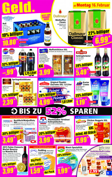 Bitte beachten Sie, dass dieser Text automatisch generiert wird und möglicherweise Fehler enthältLATE H opfenseer Röstkaffee wrede = Classic 4 Pa 4 Hell Kaffeegenuss mit je 200,5 I ad vollem Aroma 22gl. 3,10 Pfand, L; je 5009 Einzelflasche: -,54, (1 kg= 13,98) wir auatıra mt auaLıran 22gl.-,08 Pfand (11=1,08) Si lu 2% pilliger er) Dallmayr| 2 9% billig ee Hop => 022026 um: 16.02. 22.02.2026 = Waffelröllchen XXL = = mit Vanille oder Haselnuss-Kakao Cremefüllung - WI Fl ein perfektes koffeinhaltiges Zusammenspiel Erfrischungsgetränk, von zarter Waffel Gebirgskräuter verschiedene Sorten 4 SCHWAP und köstlicher Creme 30% vol, je 0,7 | Likôr-Spezialität je 75 1,229l.-,25 Pfand in einer praktischen (11=7,84) 1=-,57) XXL Schale je 6009 \ Fr (1 kg =6,65) En in 52% bi niger = | UVP 125 1=149 NXL 28% billiger zum Ver gleich 175 Liter KE} Aktion um: 16/02. bis 2: | Kaviar E » Spritzgebäckblume | Original Plombir e Eiscreme XXL 1,8 Liter Creme AVIAR gefüllt mit Aprikose =! :| mit Vanillegeschmack, im Schlauchbeutel je 1,8 | (1 1 = 2,77) aus Heringsrogen — oder Kirsche Pa 7 mit Dill- oder LEE je 450 g Knoblauch-Note ME (1 kg= 5,31) |: ek à ja je 75 g (1 kg = 15,87) CT 21% piuiger m, 28% va ine GE mi + u 25% billiger 27, À 22) fs AC a 2 77 Fe | | eer Aktion YZ 16.02. 2.02.2026 BIS ZU En SPAREN Marmeladen Törtchen/ NORDSEE Backfisch/Matjesfilets er, Chicken Nuggets XXL a dd Fa XXL matjesfilets mit milder Rauchnote ee rabower) Haferplätzchen ur dd Nuggets im je 280 g (1 kg = 12,46) oder Backfisch in knuspriger Panade je 3109 in der wiederverschlieBbaren Dose — knusprigen (1 kg= 11,26) nor Haferplätzchen je 450 g einzeln entnehmbar, Backteig aus Hähnchenfleisch, (1 kg = 887) oder Marmeladen Törtchen mind. 40 Stück NORDSEE NORDSEE je 600 g (1 kg = 6,65) je 1 kg (1 kg = 6,99) KL > Mages: d 30% billiger 04 billiger APE ann mind. 40 stick oe © + | CIE es ass Fe 1K9 2015 Patön-Clemente Wurst-Spezialität bella casa Merlot Reserva Grobes Bauernmett, Deftige Gutsleberwurst man Pudding Sahnepudding oder Bauernfrühstück je 250 g (1 kg = 7,96) La Mancha D.0 Schokolade oder Vanille; GrieB- > Teelichte/Duft-Lichte Spanien - trocken Wein von intensiver pudding Traditionell oder Zimt im Clearcup — Vanille oder Brombeere Nase, mineralische Nuancen mit Aromen roter Farbe mit granatroten Reflexen. Reife je 4x125 g (1 kg = 3,18) 23% billi ger Brenndauer: ca. 4 h &Honig je 18 Stück oder Teelichte je 30 Stück, von roten und schwarzen Früchten. Vollmundig am Gaumen, mit einer “La harmonischen Tanninstruktur. je 0,75 | (1 1= 5,32) Big pack il Rn ddie 20% billiger 20% billiger ij er Fer 7 ë = ger Pack