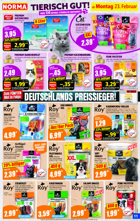 Bitte beachten Sie, dass dieser Text automatisch generiert wird und möglicherweise Fehler enthältTIERISCH GUT PREMIUM 4. ) KATZENSTREU Ultra klumpend BONBON rx mts! mit Ocean Duft je 6 | (1 1= —,66) 3 Ca il ei Go ENSTREU KATZENKISSEN € ra mr | Er mit Lachs, mit Huhn Fe. moe und Käse oder Anti 2 mn À a Hairball je 400 g Ër E IN LE KATZENSTREU, 7 19) JE) ma M lairballh Fr Cie 2.40 de. 2 Y ma par) I al 2, gg Se te arotop m 4006 von 23.02. bis 01.03.2026 Nur gültig mit NORMA Plus App = uutaompde a PREMIUM HUHNCHENFILET A PREMIUM KATZENNAHRUNG 19 mit Calamares, Rote Beete, Karotten oder Garnelen verschiedene Sorten, z.B. Grill-Stückchen mit li FEINE PASTETEN je 3x100 g Rind, Feine Stückchen mit Lachs in Spinatcreme Land- oder Gemischte-Variationen je 8x85 g - > UT venit DE a ne (1kg=8,30) à thd Cf | je 100 g (1 kg = 4,50) == 1:18 zi (1 kg=5,81) PREMIUM OUR Pi + FEINE pee Tr PASTETEN Le Le TAILLE kg 63) 22% biliger 17” 0) TA QE) arotafp 1,99” - 35” x 3,29” ja y arotep ] CT UE UN LE PT RTL www-arotop.de von 23.02.bis 01.03.2026 EE 0103 wwworotop.de MEE ei man: MNEY At IFTEN zum VER | Folge ze FOCUS 44/25 | DEUTSCHLANDTEST.DE DEUTS LANDS Na Enea en KAU DONUTS KAUKNOCHEN/-ROLLEN Gefüllte Kaurollen 7 Stück, je 175 g (1 kg = 7,37), IN Ro © XXL Roy gedrehte Kauknochen 2 Stück, je 200 g (1 k Roy eme Qt Roy ‚oder Gefüllte Kaurollen 5 Stück je 275 g (1 kg = 4,69) FISCH- & HÜHNCHENSTREIF mit Enten- oder LECKERE KAU DONUTS aaa, SNACKS BANDES AU POULET ET AU LIEU NOIR Hühnchenfleisch acteert me Fisch- & Hühnchen- — Small je 8650 9 streifen oder oder Large nd Calcium-Knochen je4x100g ours aon Vermaas caurwocnes je 3609 eel (1 kg =17,48) zonden tones ( kg = 13,86) re I} Fl | 23% bil lie I | a à Sy N arotgp 2 TE -,99 LE d #$ Auch online (il KT 00 von 23.02. bis 01.03.2026 De L NORMA Plus App www-orotop.de Geflügel + e Snacks os z.B. Dumbbell, — Roy Spare Ribs Roy Roy je 1009 (1 kg =23,90), FILETSNACKS HÄHNCHENBRU: SOFT Hühnchenstreifen mit Ente | Roy je 1509 (1 kg =15,93) und LECKERE SNACKS XXL Hännchen- VI SNACKS viele weitere Sorten denim oder Entenbrustfilets mit Hühnchen oder FF SOFT AOS je 450 g (1 kg= 11,09) | Rind je 500 g mit Hühnchen € (1 kg= 5,98) on EN en (ee Le = tE 8 3 én ermm "a arotop Aktionszeitr: | 723102 bis 01032 www.arotop.de in STEAKFILET pe KAUSTANGEN SALAMI SNACKS FEINE PASTETEN x + + @ leckere Steakfilet Streifen - ‚@ umwickelt mit Entenfleisch © verschiedene Sorten, z.B. © mit Huhn, Rind oder Ente Lachs und Kabeljau, Ente und oder Hühnchenbrust Streifen mit Ente oder Hühnchen je 800 g (1 kg = 2,49) Ro Kabeljau oder Happen — Roy je 240 g (1 kg= 14,96) Roy je 200 9 (1 kg = 14,95) Roy” Lachs und Kabeljau je 2009 ( kg = 14,95) = ij Roy STEAKFILET, STREIFEN SALAMI STREIFEN tunen LECKERE KAUSTANGEN Sc m roman De ANDES = 9 me éé ttl Î mi ; Loc) 09260 ee uch online 7 gr **Güllig fü registrierte Nutzer der NORMA Plus App. Nur in der Flle einlöshar. Es gelten die Bedingungen in der NORMA Plus App.